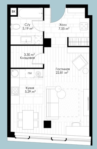 Внешне здание просто влюбило меня в себя. Вот эти все окна панорамные, со стороны и не скажешь, что жилой дом. Я переживала лишь из-за того, что будет шумно. Но застройщик постарался, мы и соседей не слышим, и улицу тоже. Плюс тут высокие потолки 3,2 м, окна -2.1, что делает апарты еще более просторными и светлыми.