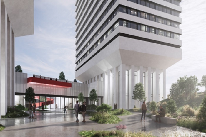 Проект был создан при участии бюро Kleinewelt Architekten, визуально он представляет собой сочетание стеклянных блоков и панелей из стекловолокна и металла, а также необычные акценты, такие как спиральная лестница и главный вход, которые будут оформлены в красных тонах.