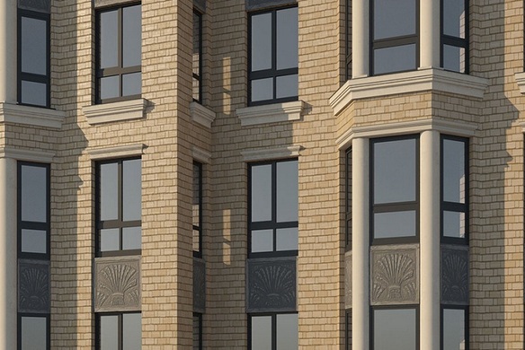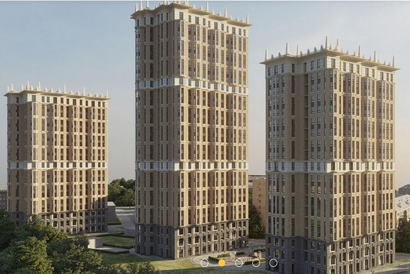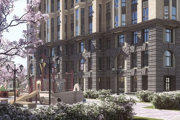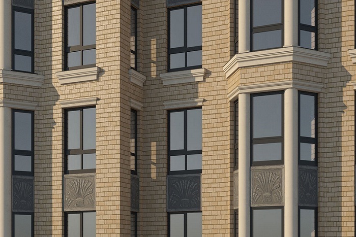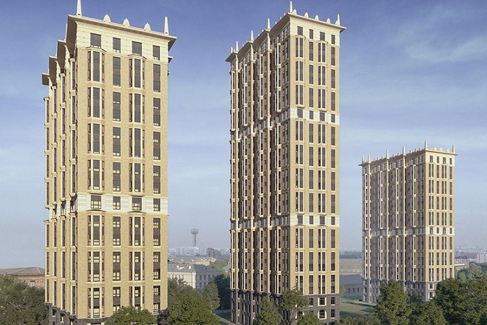На охраняемой территории в два гектара — значительную часть ее займет большой закрытый двор, оформляемый специалистами по ландшафтному дизайну, возводятся четыре высотных корпуса. Каждое здание уникально по своему внешнему облику, но все они выдержаны в стиле знаменитых «сталинских высоток» с огромными окнами, богатым декором фасадов, просторными входными группами-фойе с колоннами.