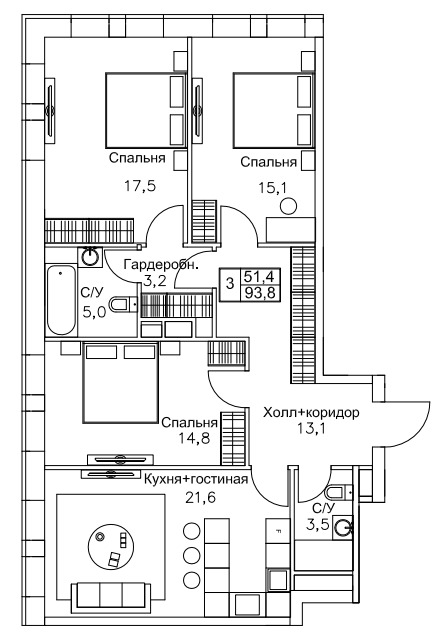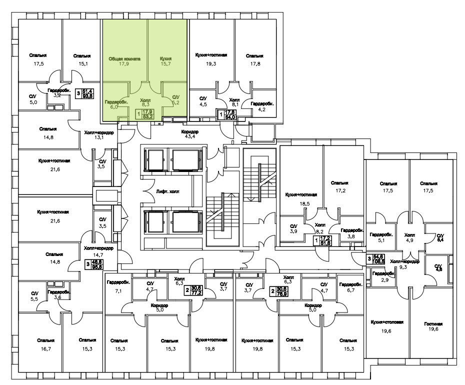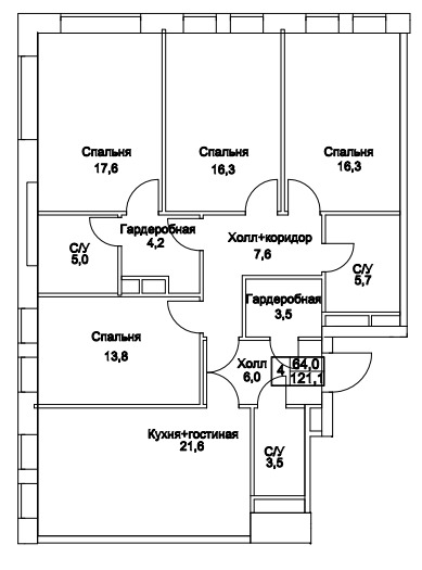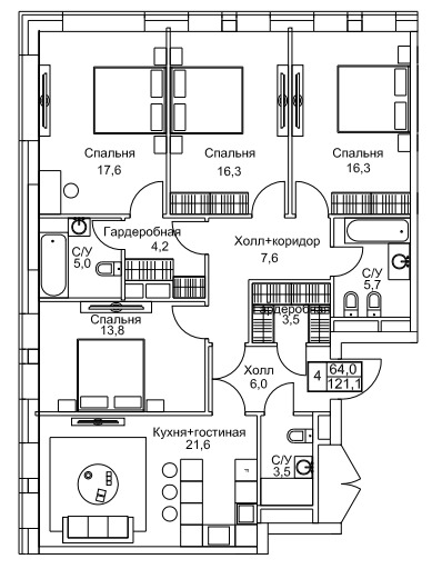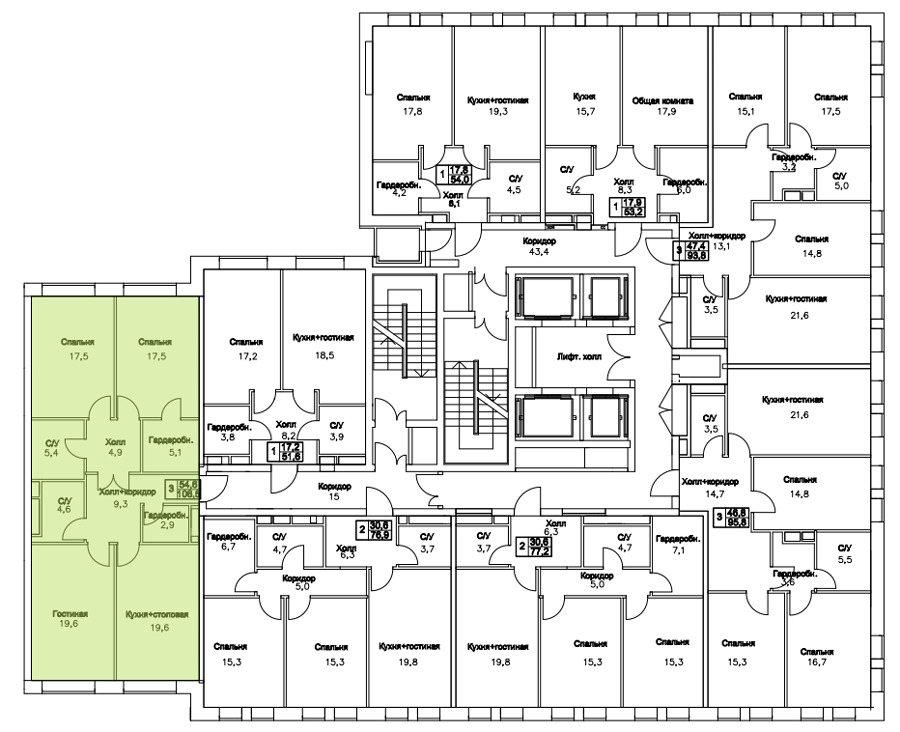 Квартиры - всего из 424, предлагаются свободной планировки, площади варьируются от 51 до 121 кв. метра. Сдаются они без внутренней отделки.