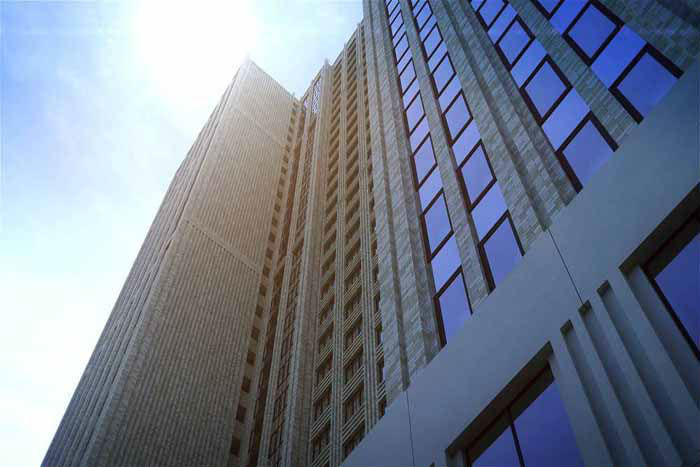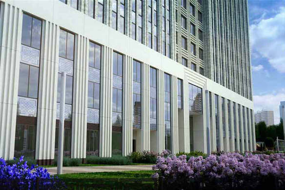 Новый комплекс - 33-этажный дом, спроектированный известным бюро. Выдержан он в стиле классической архитектуры 50-х годов прошлого века. Здание оснащено системой навесного вентилируемого фасада.