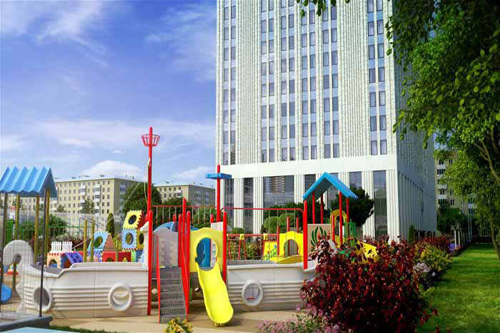 Территория комплекса закрыта и находится под охраной. Внутренний двор благоустраивается— устанавливаются спортивные площадки, детский игровой городок и обустраиваются места для отдых жителей.