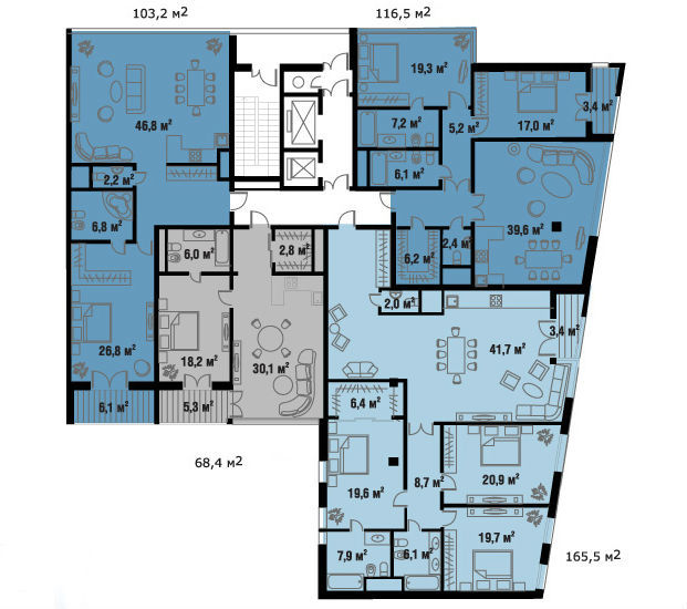 Нельзя не отметить отличный вкус архитекторов комплекса. Особый восторг, как правило, вызывает ванная комната с окном. Приватность жильцов обеспечивается удобной планировкой — основная часть комплекса выполнена по актуальному принципу «2 квартиры на одном этаже».