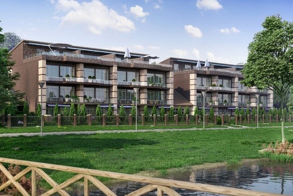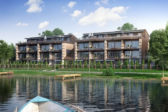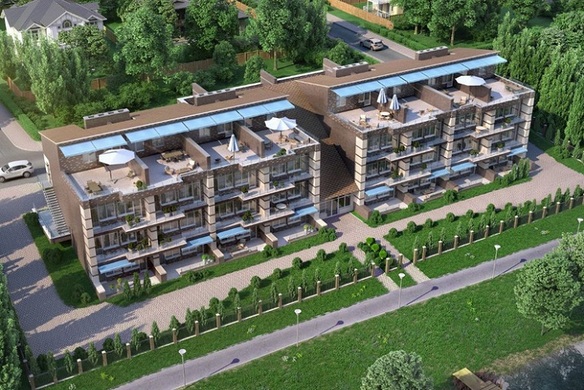 На закрытой, охраняемой территории возводится двухсекционное монолитно-кирпичное 3-этажное здание, привлекающее внимание стильным современным обликом и панорамными окнами — из них открываются красивейшие виды на берег реки Десны.