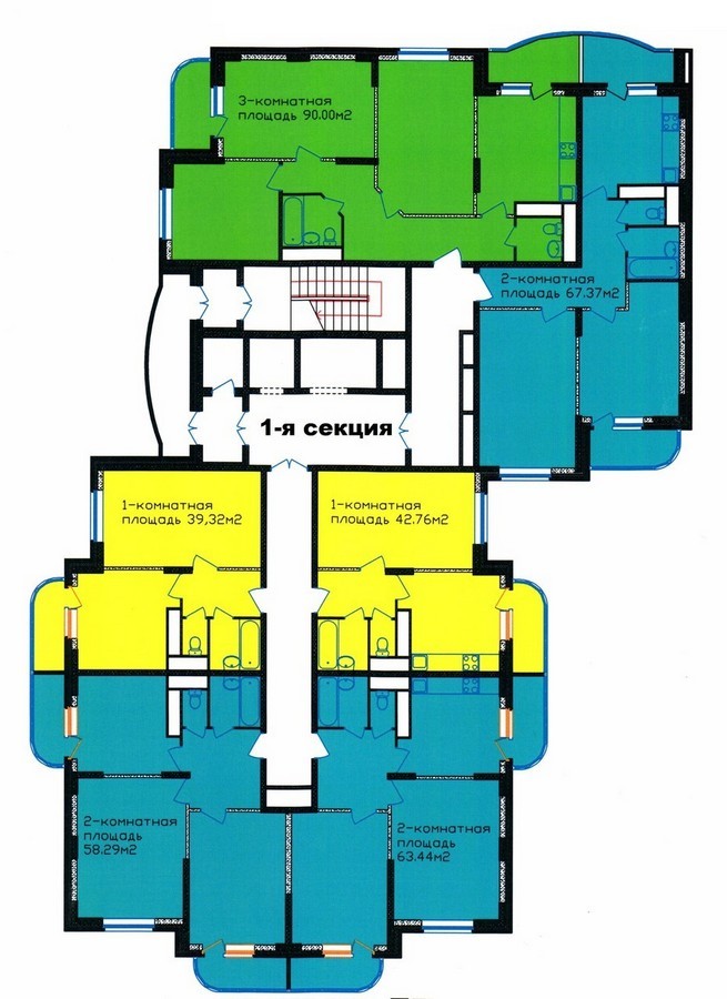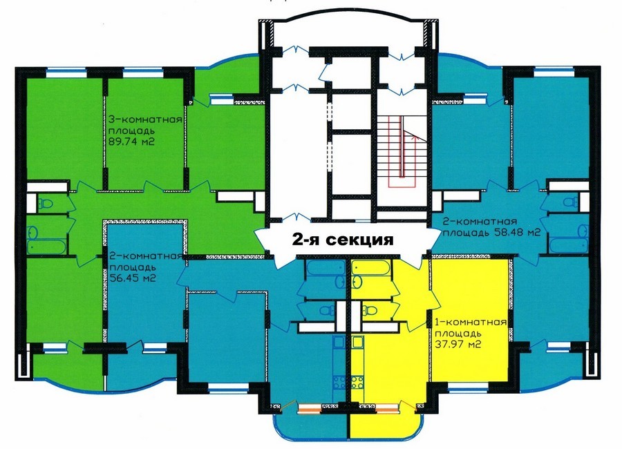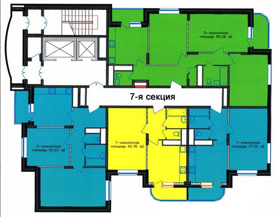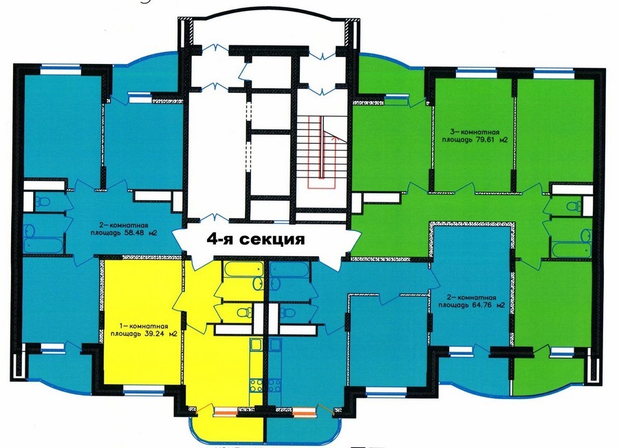 Квартиры разной планировки и кладовки, видеонаблюдение и подводки под антенны.
