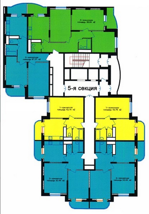 Большой многоподъездный дом переменной этажности возведен по индивидуальному проекту. В нем 488 квартир площадью от 43 до 91 кв. метра — от одно- до трехкомнатных. Продаются они с черновой отделкой.