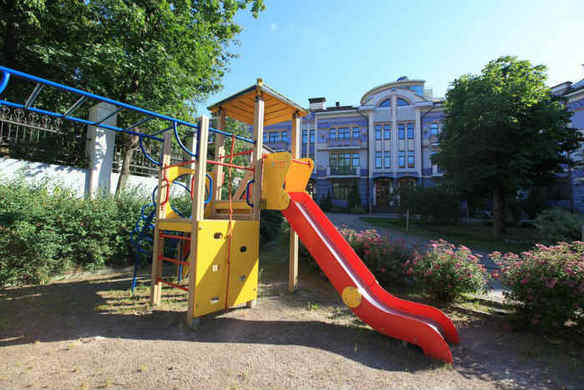 Территория жилого комплекса закрытая, находится под охраной. Над ее обустройством поработали специалисты по ландшафтному проектированию. Уютные прогулочные дорожки, аккуратные газоны, беседки со скамьями и оригинальные фонари. Высажены большие деревья, так что можно сказать, что жители располагают собственным парком.