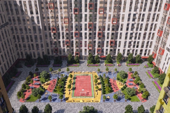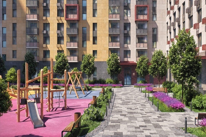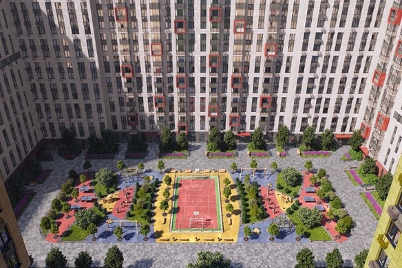 Новый комплекс — четыре многосекционных разновысотных (6-16 этажей) корпуса с яркими фасадами, большими окнами и просторными, оригинально оформленными входными группами.