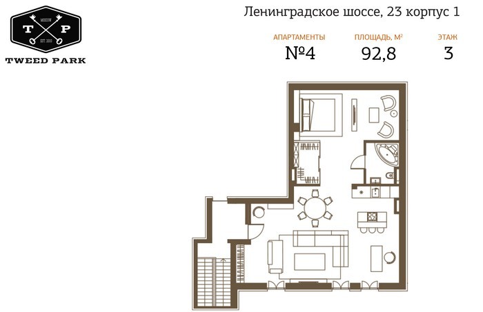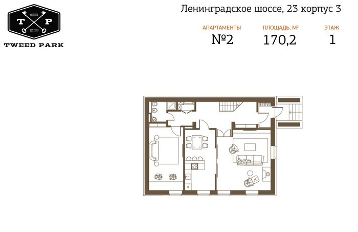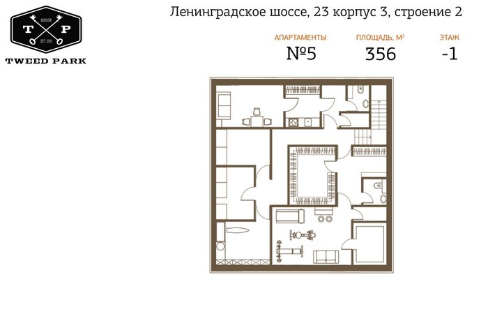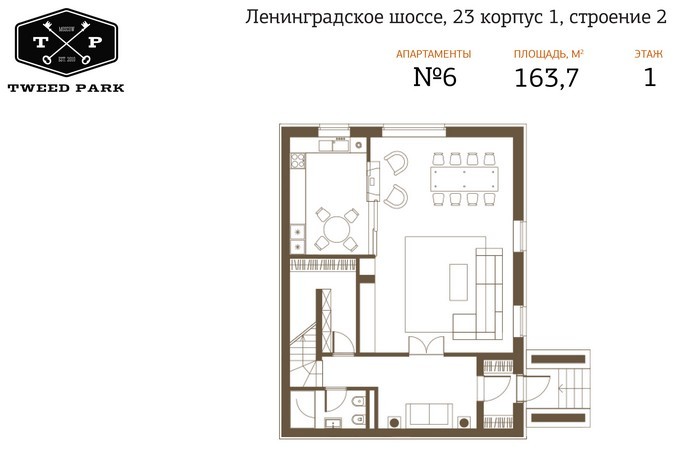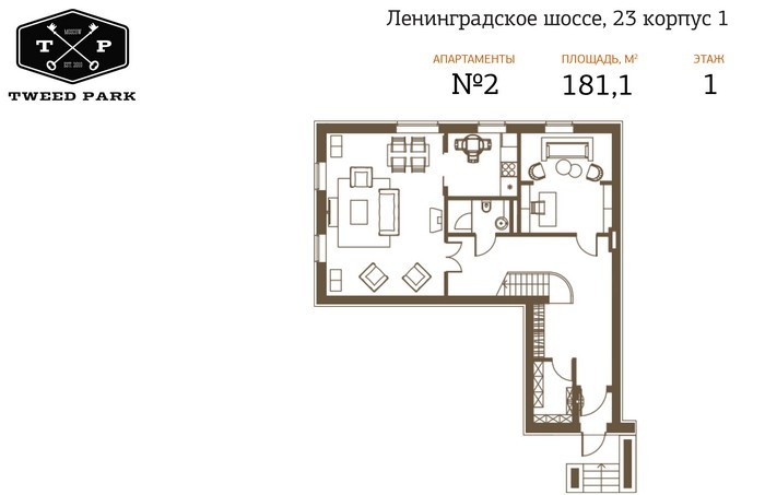 В новостройке «Твид Парк» предлагаются апартаменты размером от 77 до 227 кв. метров. При желании их можно объединить — макимальная площадь составит 900 кв. метров. Во всех апартаментах имеется отдельный вход и возможность установки камина.
