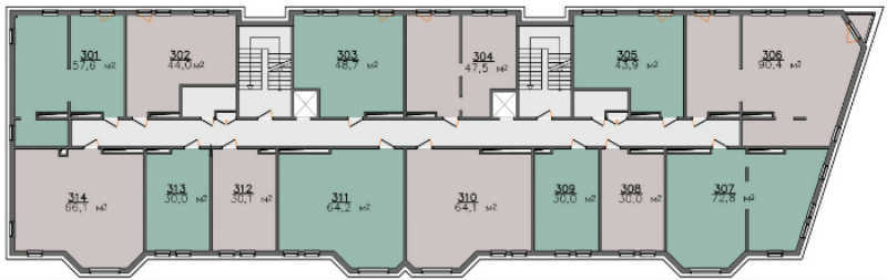 Площадь квартир:28 — 90 м2