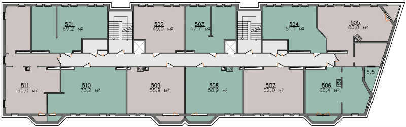 Общее количество квартир: 55