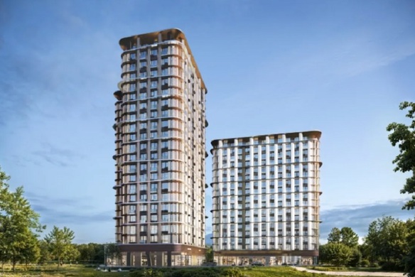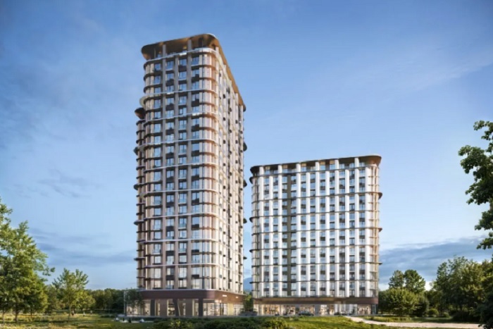 В состав проекта войдет 2 корпуса разной высоты от 17 до 21 этажа. Архитектурный облик комплекса отсылает к истории района, пластичные фасады серебряного и золотого оттенка напомнят блестящие на солнце перья птиц.