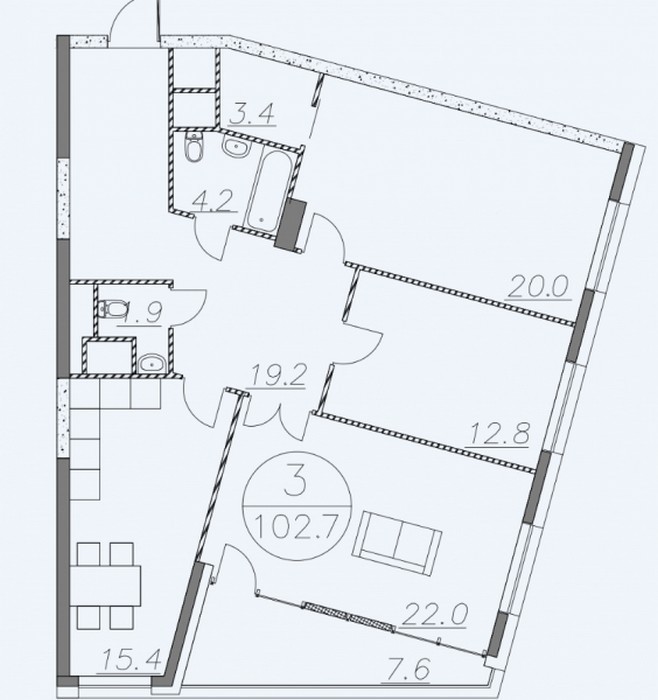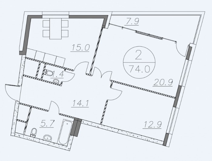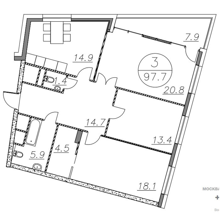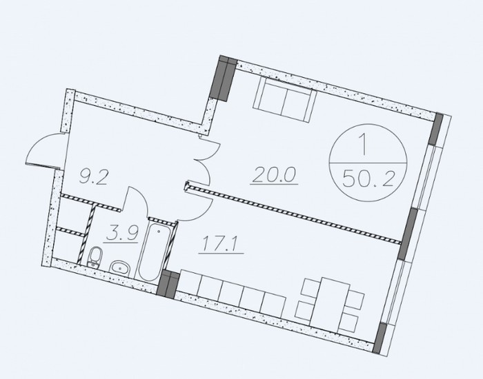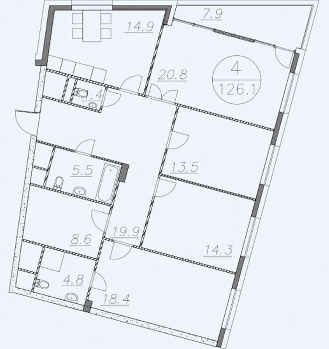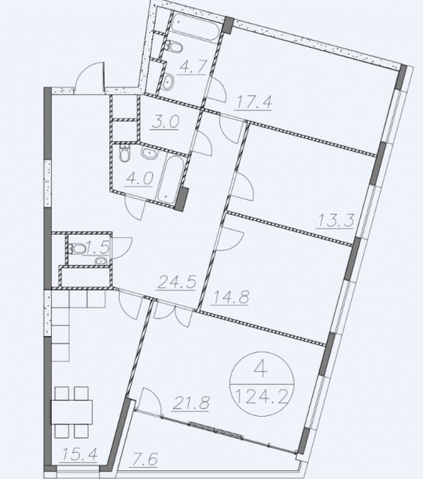 Площадь квартир:50.2 — 124.2 м2