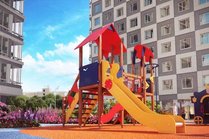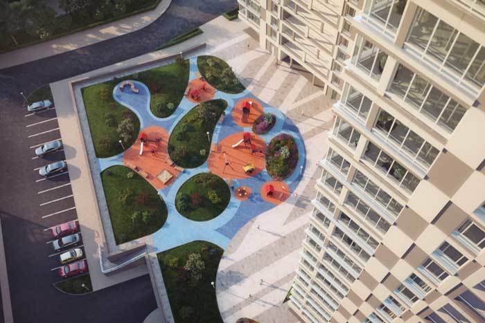 Придомовая территория благоустраивается, оборудуется большая прогулочная зона. К тому же, место для нового комплекса выбрано неподалеку от огромного зеленого массива Коробковского сада, обеспечивающего благоприятную экологическую обстановку.