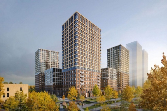 Концепция жилого комплекса принадлежит известному голландскому архитектурному бюро — разновысотные монолитные здания привлекают внимание стильной отделкой фасадов с панорамным остеклением.