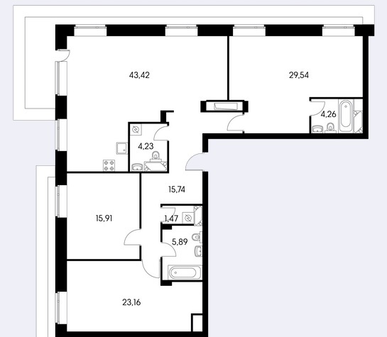 Выбор недвижимости впечатляет — от классических однокомнатных квартир до пентхаусов с высокими, 5,5 метра, потолками и приватными террасами. Можно подобрать квартиру с открытым балконом или угловыми увеличенными окнами.