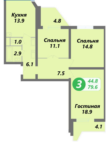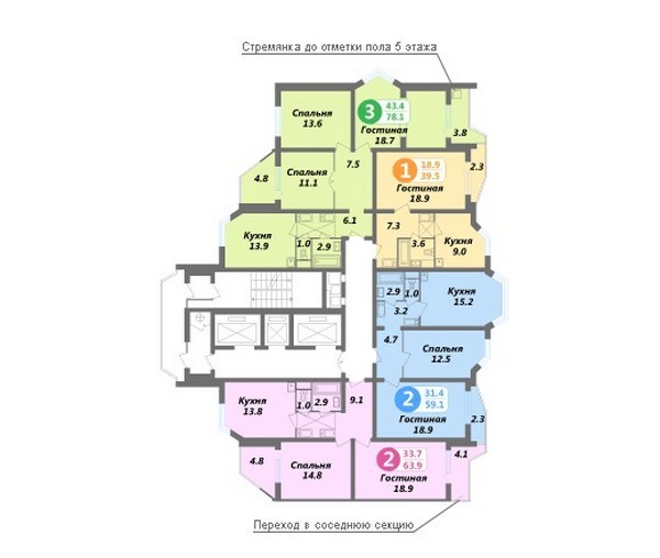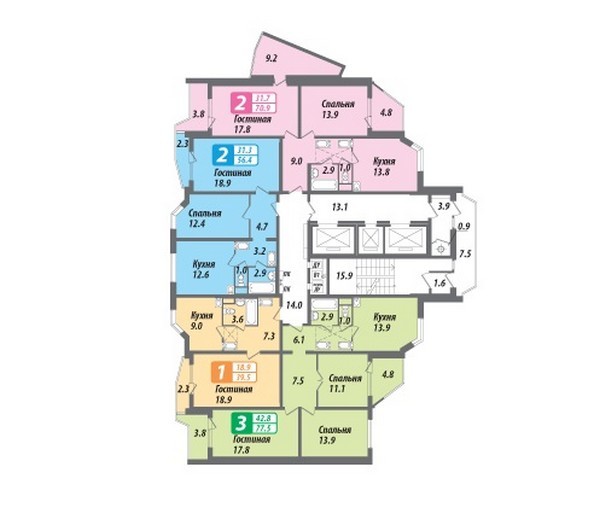 Площадь квартир:39 — 80 м2