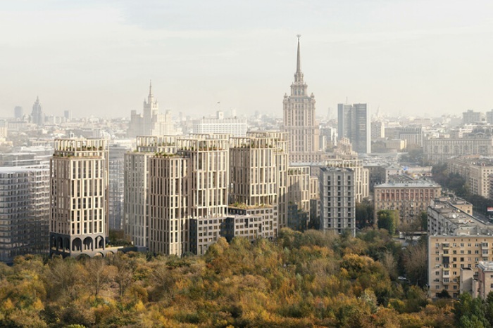В рамках проекта возводится десять корпусов высотой от 7 до 18 этажей. Элегантность архитектуры подчеркнут объемные арки и мягкие линии фасадов, выдержанных в природных тонах