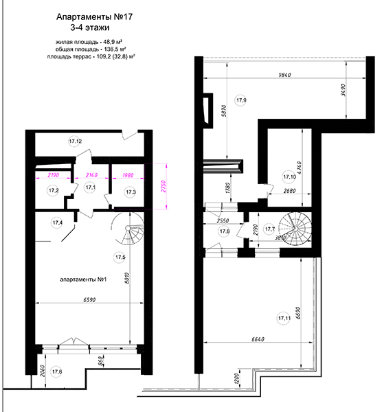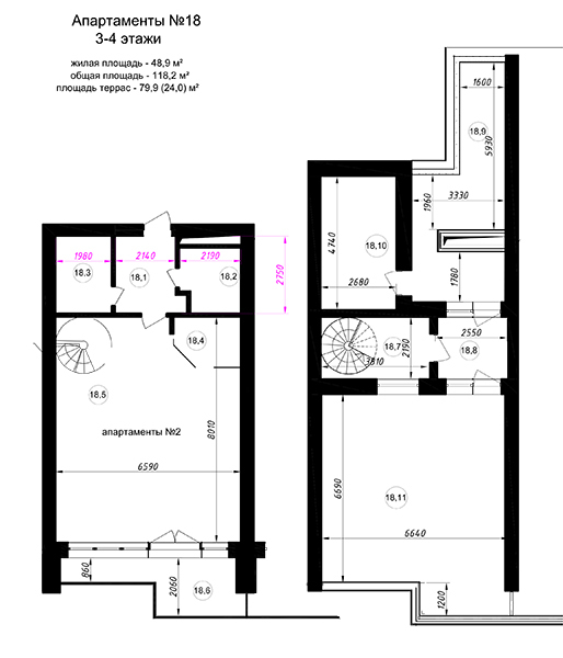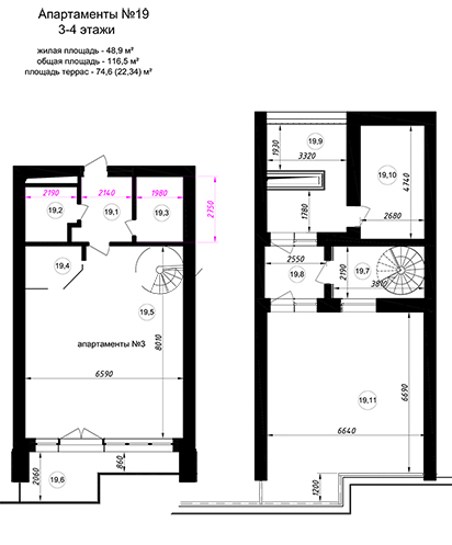 Верхний этаж отведен под двухуровневые квартиры размером в 204 кв. метра с террасами и выходом на эксплуатируемую крышу.