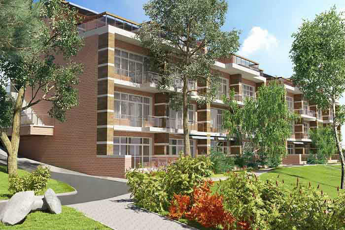 Недалеко от Москвы. В наличии видовые апартаменты с террасами или выходом на эксплуатируемую кровлю.