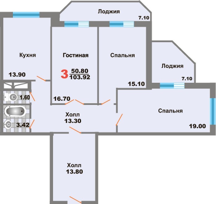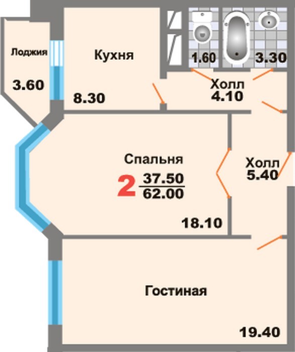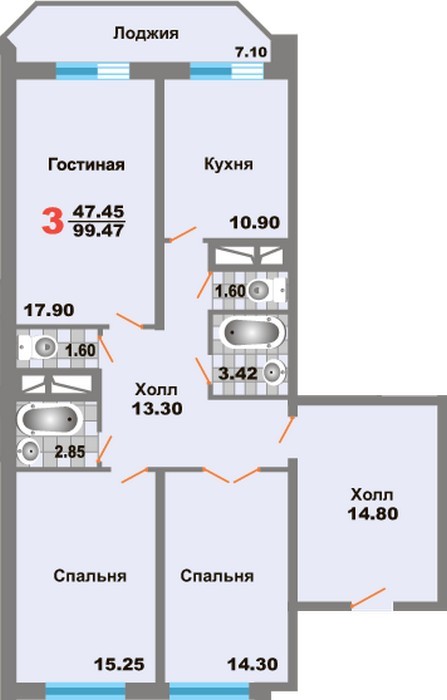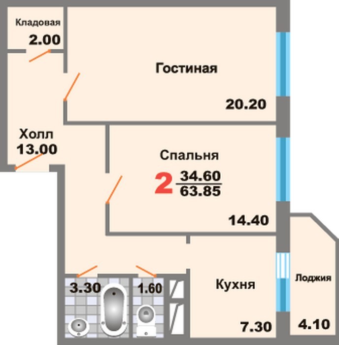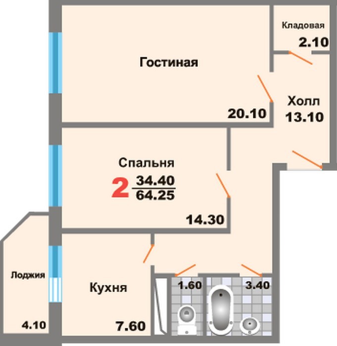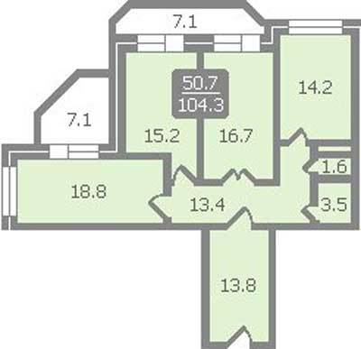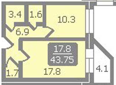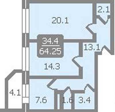 | Тип квартиры | Минимальная площадь, м2 | Максимальная площадь, м2 |