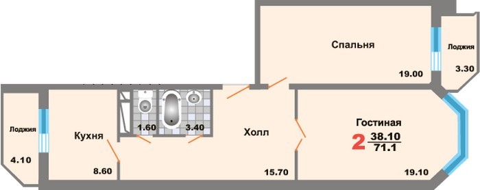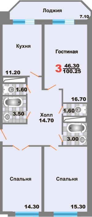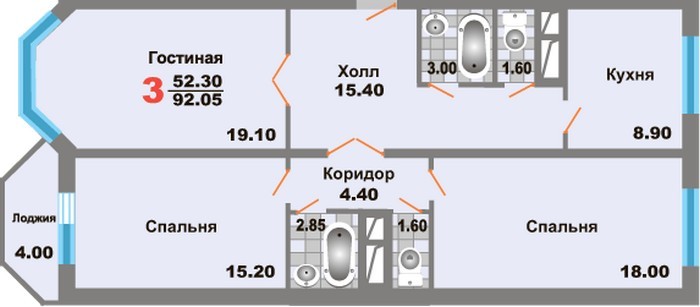 Будущие жители могут выбрать одно, двух или трех комнатную квартиру в зависимости от своих возможностей и величины семьи. Причем, в каждом типе квартир имеется выбор планировок.