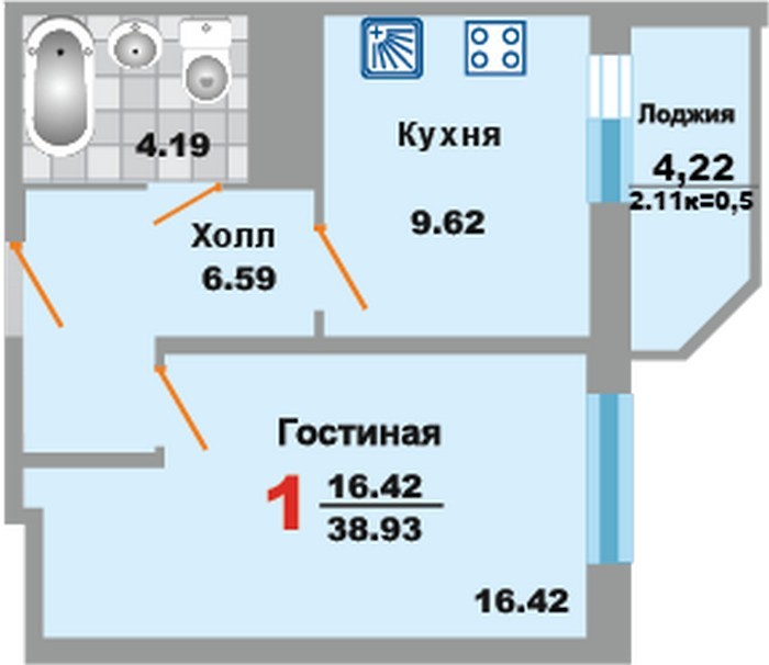 В квартирах небольшие кухни. Совмещенные санузлы в двушках. Неизвестный застройщик.