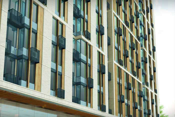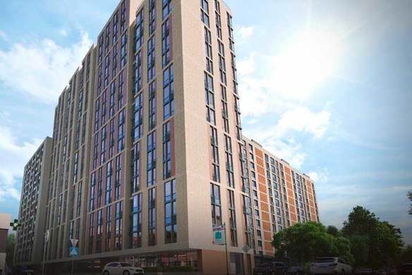 Новый комплекс - здание переменной этажности (16-19 этажей), возводимое по индивидуальному проекту, разработанному известным архитектурным бюро. Большая площадь остекления, необычные решения фасадов и отделка клинкерной плиткой нескольких оттенков придают ему стильный и современный вид.