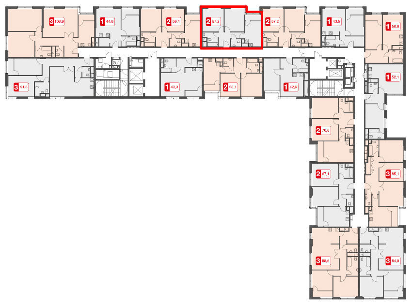 В доме 295 апартаментов — размеры и планировки способны удовлетворить практически любые запросы — от классических однокомнатных до роскошных апартаментов. Площади варьируются от 42 до 270 кв. метров. Сдаются квартиры без внутренней отделки.