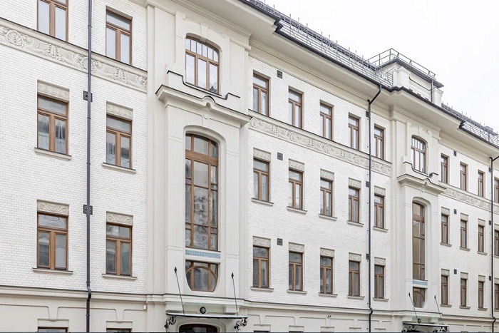 Четырехэтажное зданий постройки начала прошлого века отреставрировано с сохранением первоначального внешнего облика, заменой инженерных систем и коммуникаций, перепланированием внутреннего пространства.