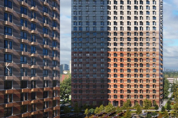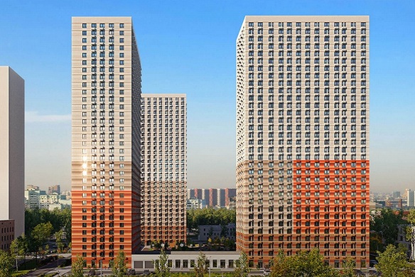 Территория застраивается монолитными высотными корпусами — всего их будет семь. Работы ведутся в несколько этапов, в рамках первой очереди возводятся два здания высотой в 33 этажа, привлекающие внимание необычными фасадными решениями.