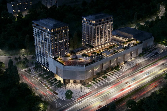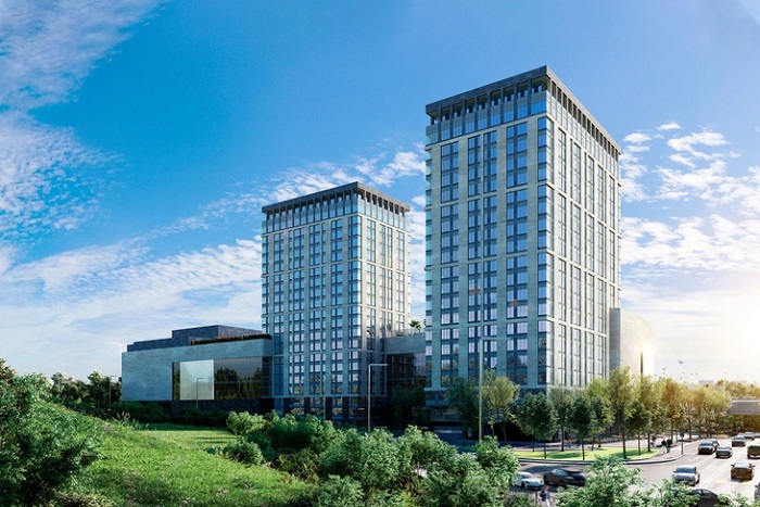 Две 22-этажные башни — в одной из них располагается офисный центр, выстроены на едином стилобате, который отдан под объекты инфраструктуры, в том числе — торговую галерею, рестораны, кинотеатр.