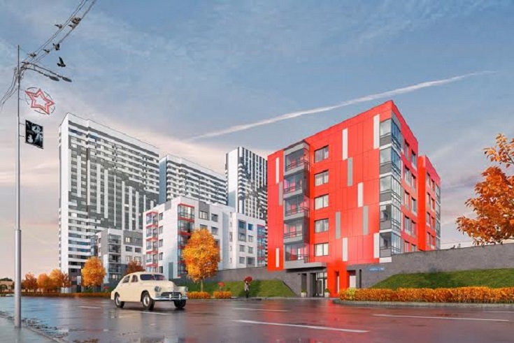 В оформлении домов будет использовано выразительно контрастное сочетание серого с белым или красного с белым, а фасады нескольких корпусов будут объединены изображением условной звезды.