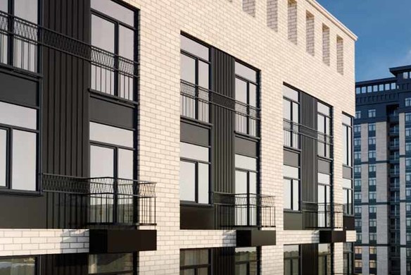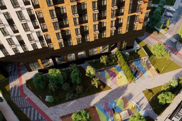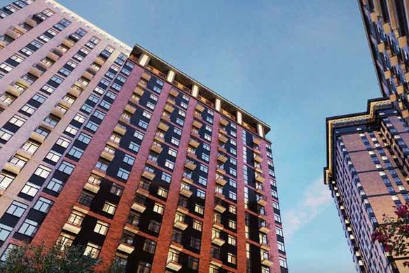 Новый комплекс — шесть монолитно-кирпичных домов переменной этажности, возводимых по оригинальному проекту и привлекающих внимание стильными решениями фасадов и панорамным остеклением.