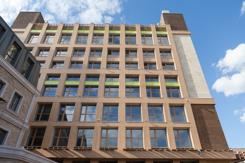 Несмотря на современный дизайн, он отлично гармонирует с окружающими сталинскими домами. Дом начали строить в 2007 г., сдали — в конце 2010. На этапе возведения монолитной коробки стройка во время кризиса была заморожена (что, в