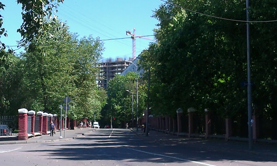 Вид на строящийся ЖК EgoDom в створе Новоалексеевской улицы. Кстати, на фото хорошо виден забор 19 века, который, возможно, признают памятником архитектуры