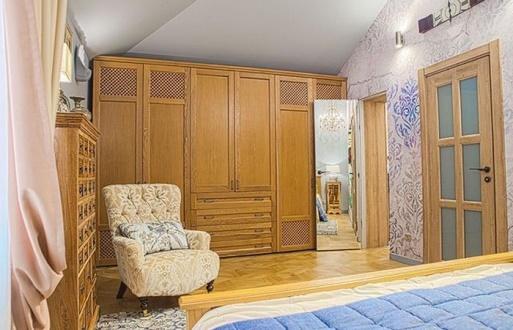 По разработанному дизайну большую спальню на первом этаже и кабинет переделают в детские, а спальню на мансарде решили вновь перестроить в хозяйскую. К ней прилегает небольшая лоджия, которую было решено переоборудовать в кабинет.