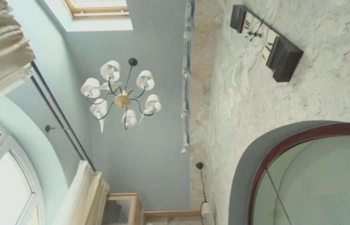 Интерьер получился комфортным и продуманным. Изюминкой стали огромные окна в виде арок. В интерьере удалось разместить две спальни, гостиную, кухню и кабинет. Гостиная со вторым светом соединена с прихожей. Здесь разместились два мягких дивана, кофейный столик и большое количество антикварной мебели, которую хозяева собирали много лет.