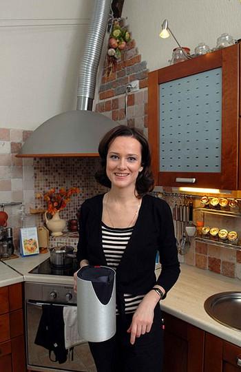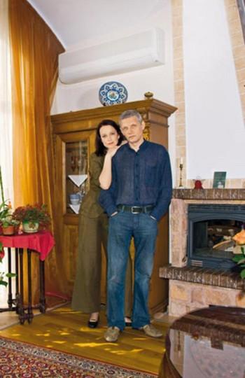 Здесь же по проекту Галибина и усилиями строителей удалось расположить настоящий камин, работающий на дровах, а рядом установили сплит-систему и старинный комод с антикварной посудой.