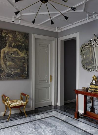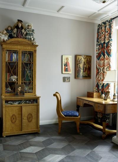 Несколько лет назад семья приобрела квартиру на Остоженке в Зачатьевском переулке. Планировкой в городской квартире занималось архитектурное бюро «Акант». Интерьер совместил в себе настоящее и прошлое с элементами уюта и комфорта.