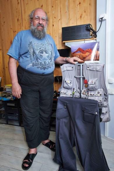 В паре метров от кровати висит знаменитый «жилет Вассермана» с огромным количеством карманов и кармашков и брюки. Одежду он заказывает партиями по двадцать комплектов в специальной фирме по пошиву спец. одежды. Максимальный вес жилета достигал почти десяти килограммов, но в последнее время он достаточно полегчал, так как большинство полезных вещей, носимых в нем, со временем преобразовались и модернизировались, соответственно потеряли в весе.