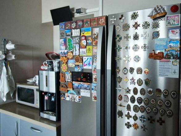 Небольшая кухня разделена на две зоны: зону готовки и приема пищи. Это помещение так же оформлено в светлых тонах. Здесь есть небольшой телевизор, микроволновка, кофемашина и двустворчатый холодильник со множеством редких и интересных магнитов.