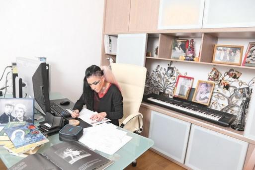 Любимым местом хозяйка считает свое рабочее место, где у нее все под рукой. Здесь стоит рабочий стол, на котором она разрабатывает костюмы к своим выступлениям, а также компьютер и музыкальные инструменты. Здесь же на полках хранятся памятные подарки от поклонников и семейные фотографии.