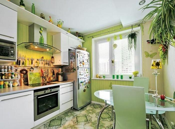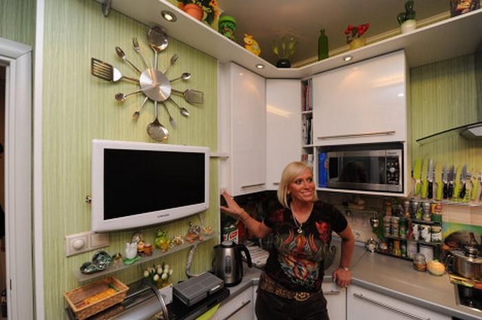 Кухня выполнена в нежно зеленом цвете, здесь так же присутствует стеклянная полка с зеркальным декором и расставленными на ней туфельками, бутылочками и другими маленькими безделушками. Рядом установлены держатели для бокалов и небольшой бар. Особой гордостью являются голландские часы в виде столовых приборов, которыми до сих пор восхищаются все друзья певицы.