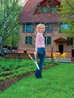 Участок в десять соток в поселке Жаворонки по Белорусскому направлению семья актрисы купила еще в советские времена и дом на нем строили в тот же период. Так как новый кирпич было очень сложно достать, пришлось вручную очищать уже использованный кирпич от застарелого раствора и из него строить коттедж.