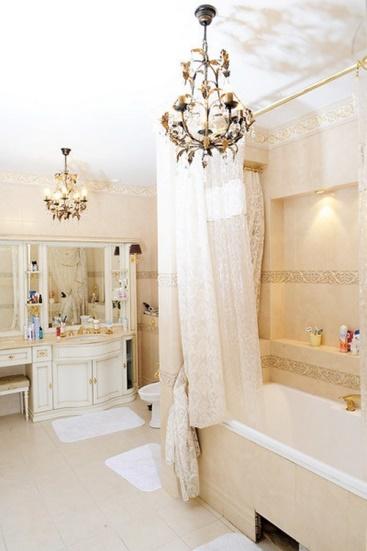 У хозяев есть отдельная ванная, расположенная рядом со спальней. Комната очень просторная и вмещает не только санузел и саму ванную, но и туалетный столик, за которым приводит себя в порядок не только хозяйка, но и готовится к концертам сам Ашихмин.