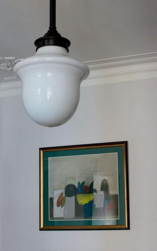 Светильники из молочного стекла в стиле 20-ых годов были куплены в одном из популярных шоу-румов.