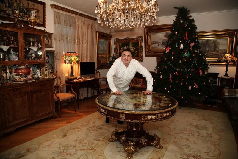 Интерьер выполнен в классическом стиле. В гостиной выставлено большое количество картин в объемных рамах и массивная мебель с элементами старинной росписи и лепнины. Помимо картин, коллекция актера богата разнообразными иконами, которые он собирает не только как коллекционер, но и как верующий человек.