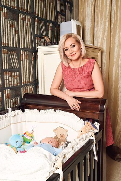 После рождения Вячеслава пришлось эту комнату переоборудовать под детскую. Установить кроватку и комод, а чтобы малышу было более комфортно ползать на полу, положили большой и мягкий ковер.
