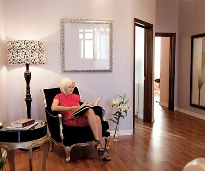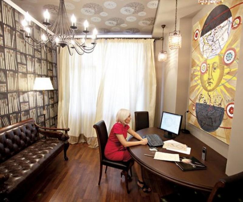В квартире много атрибутов, указывающих на род деятельности его хозяйки. К примеру, на одной из стен висят оригинальные часы, подаренные супругом, а на другой зеркало в виде солнца. Но особой популярностью пользуется старинный испанский шкаф с колодами карт Таро.